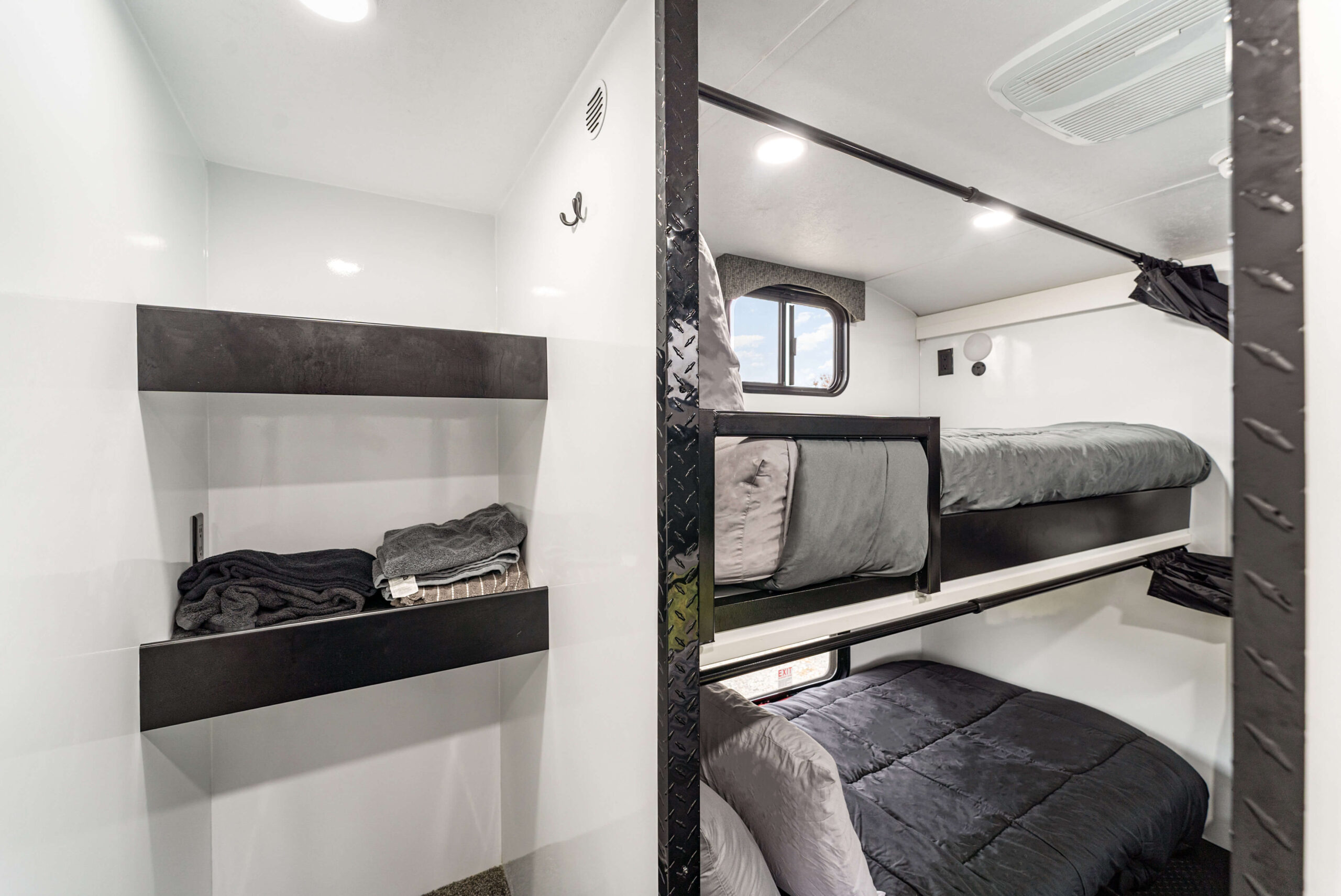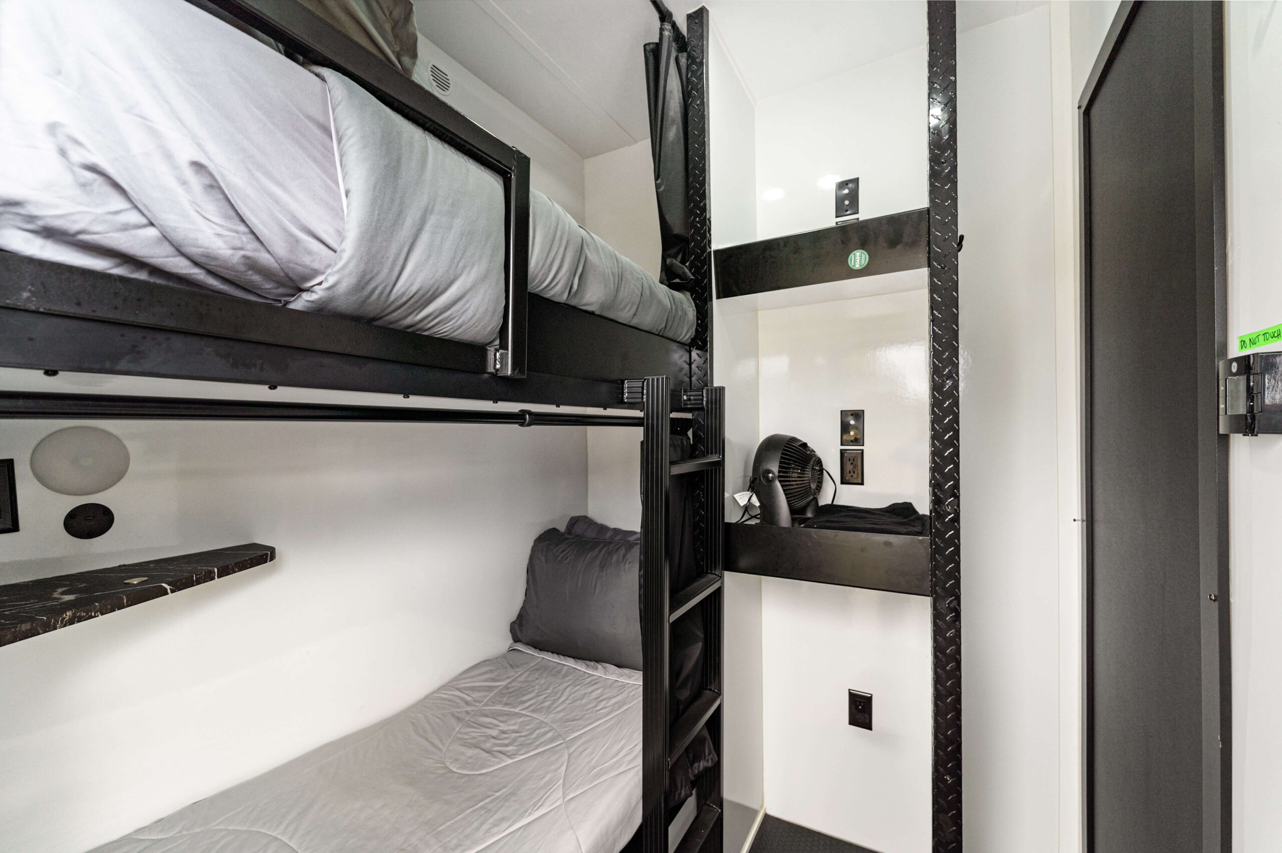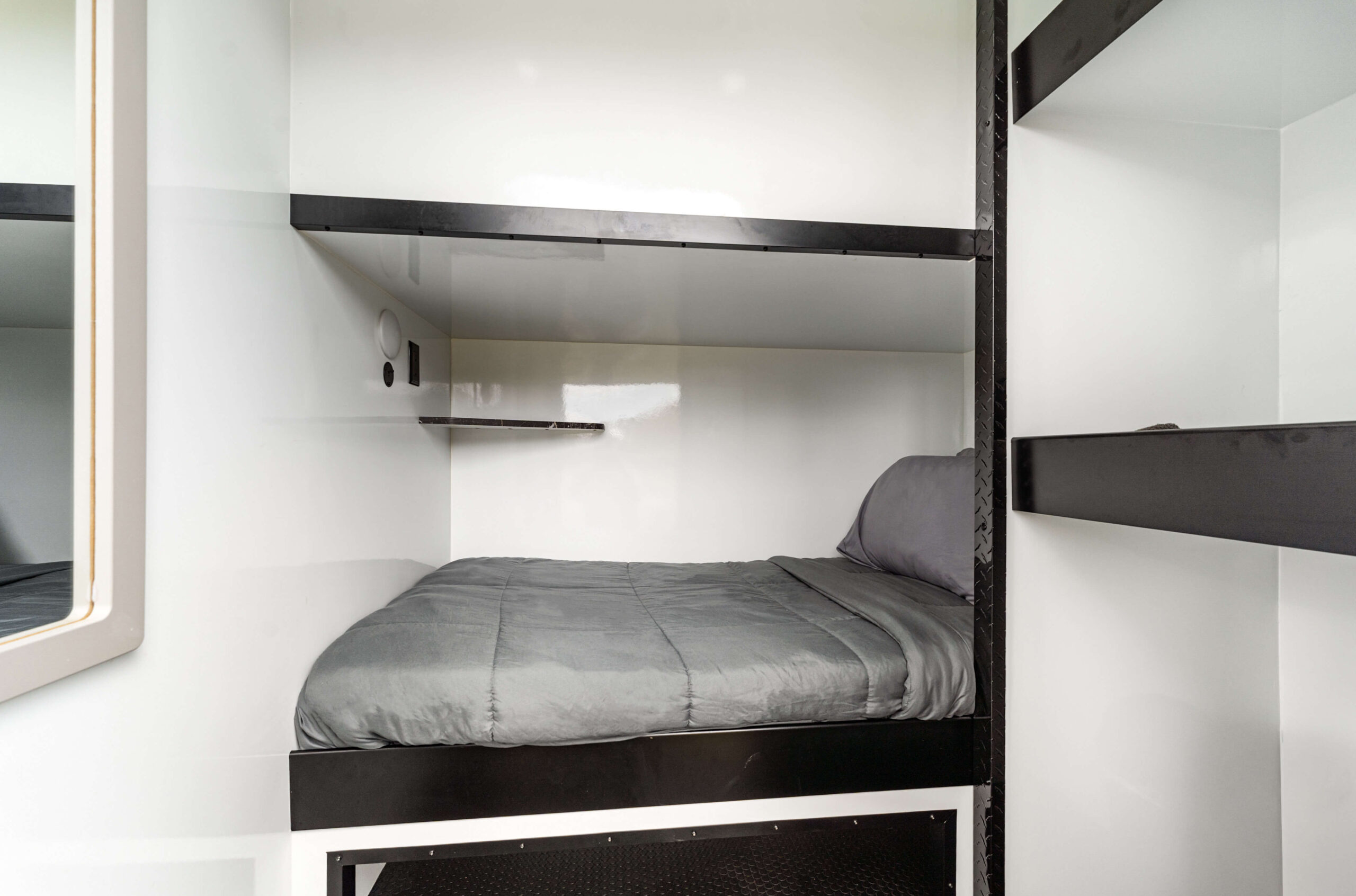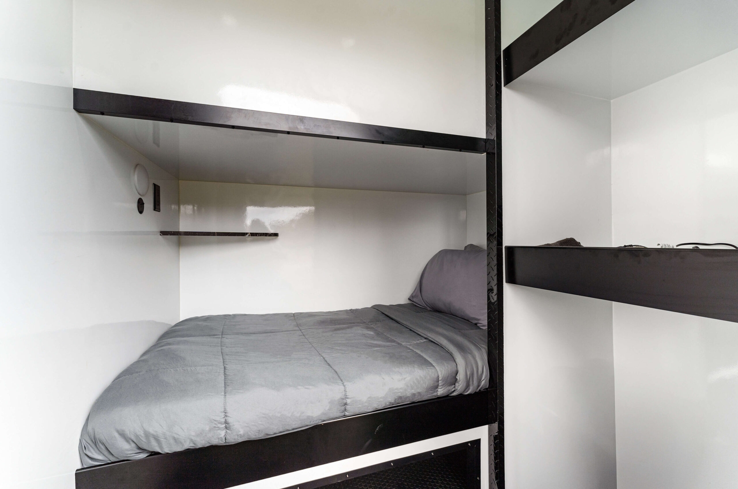 Enterprise Lodging Sleeper Trailers also contain one shared sleeping space with two bunks for a total of 4 beds. This room features a private entrance and storage space for guests.