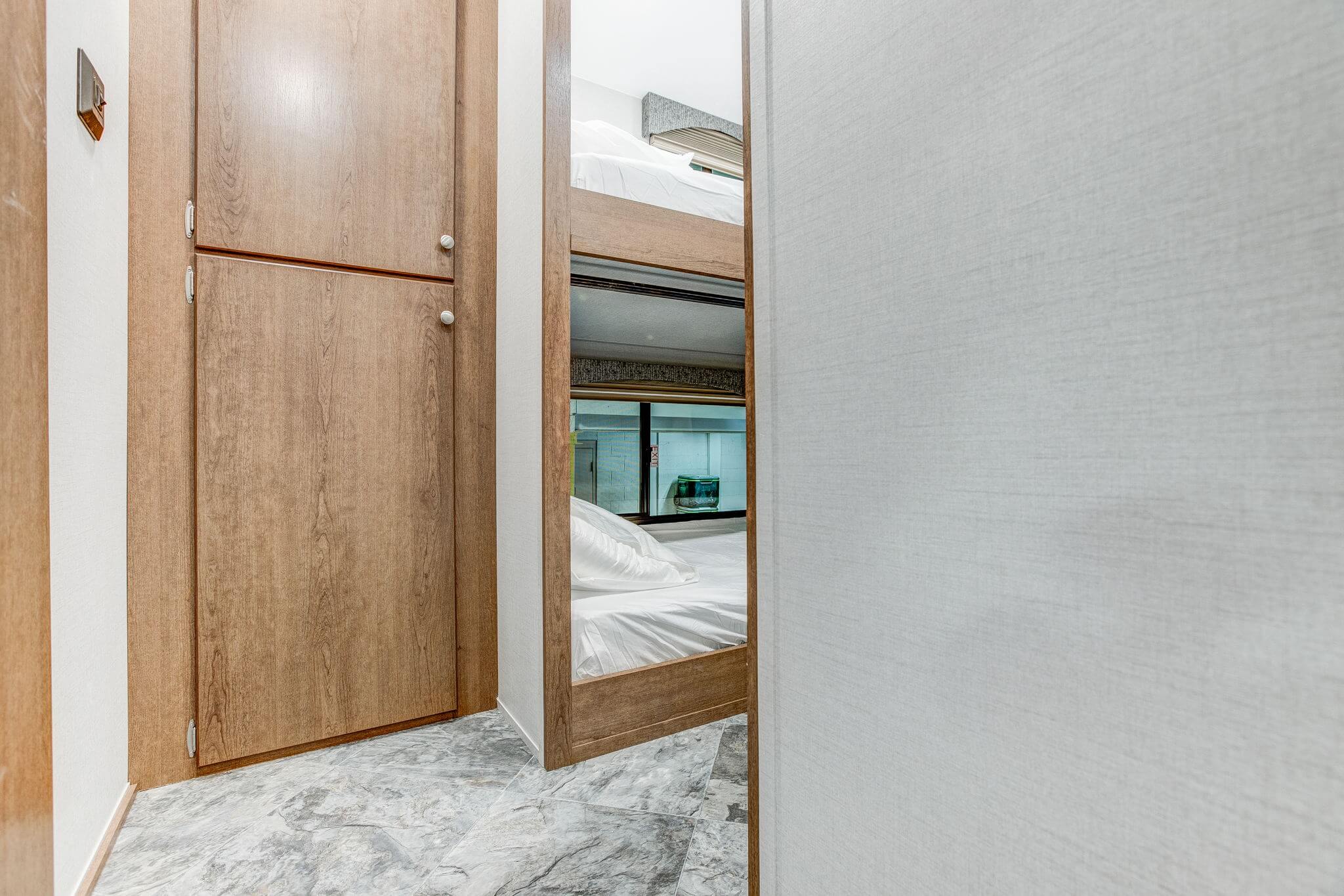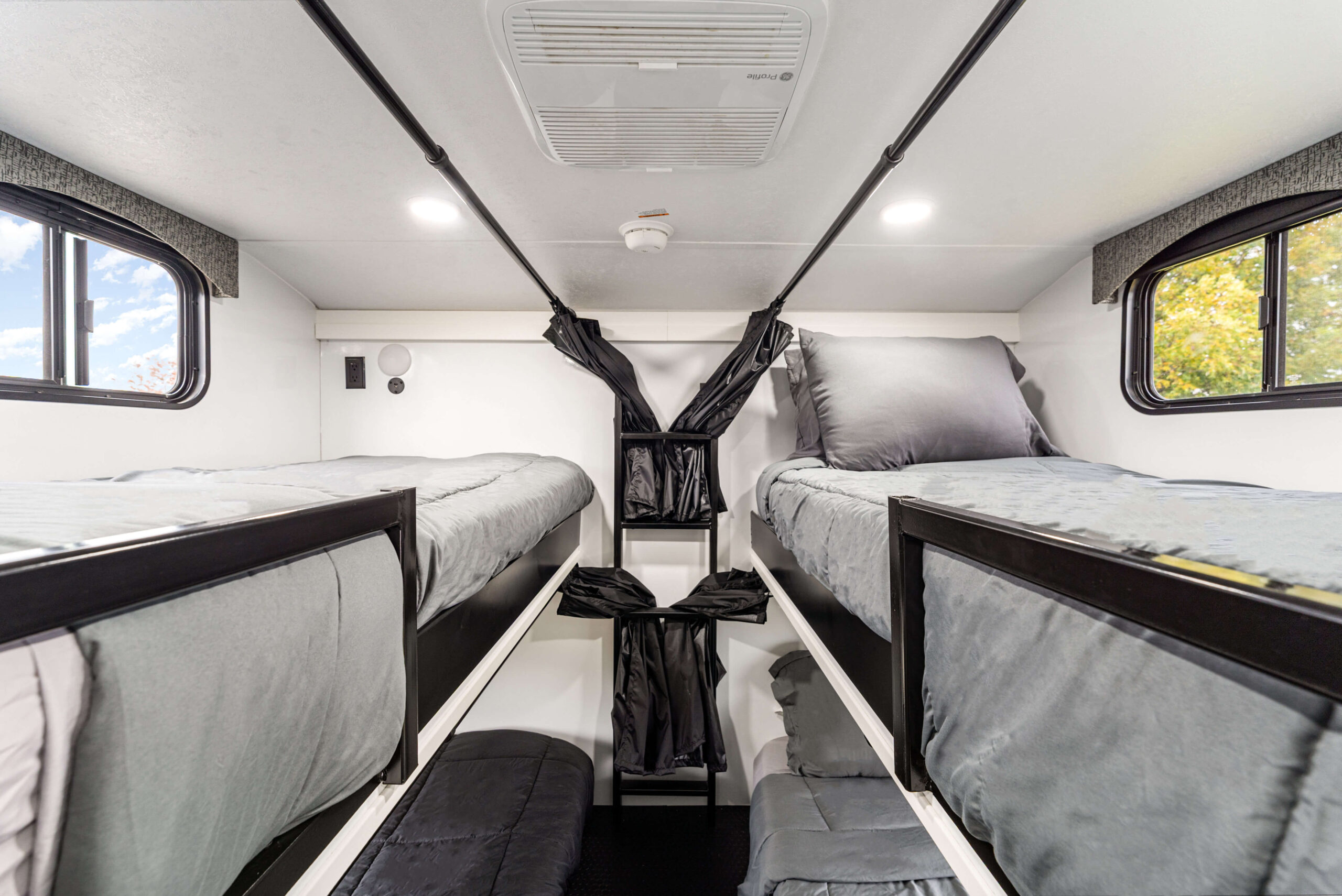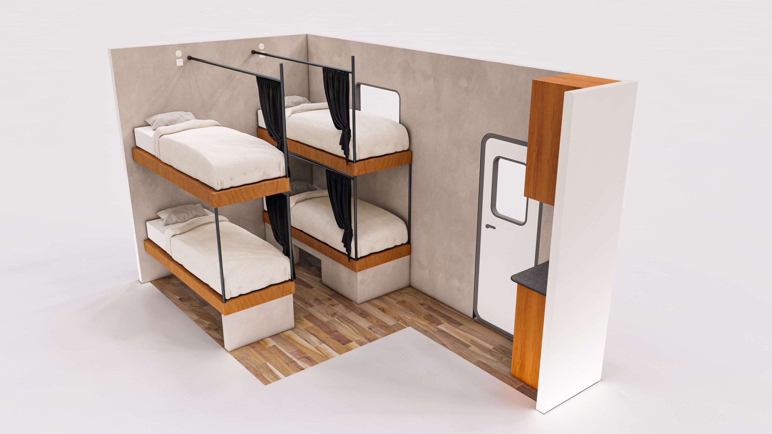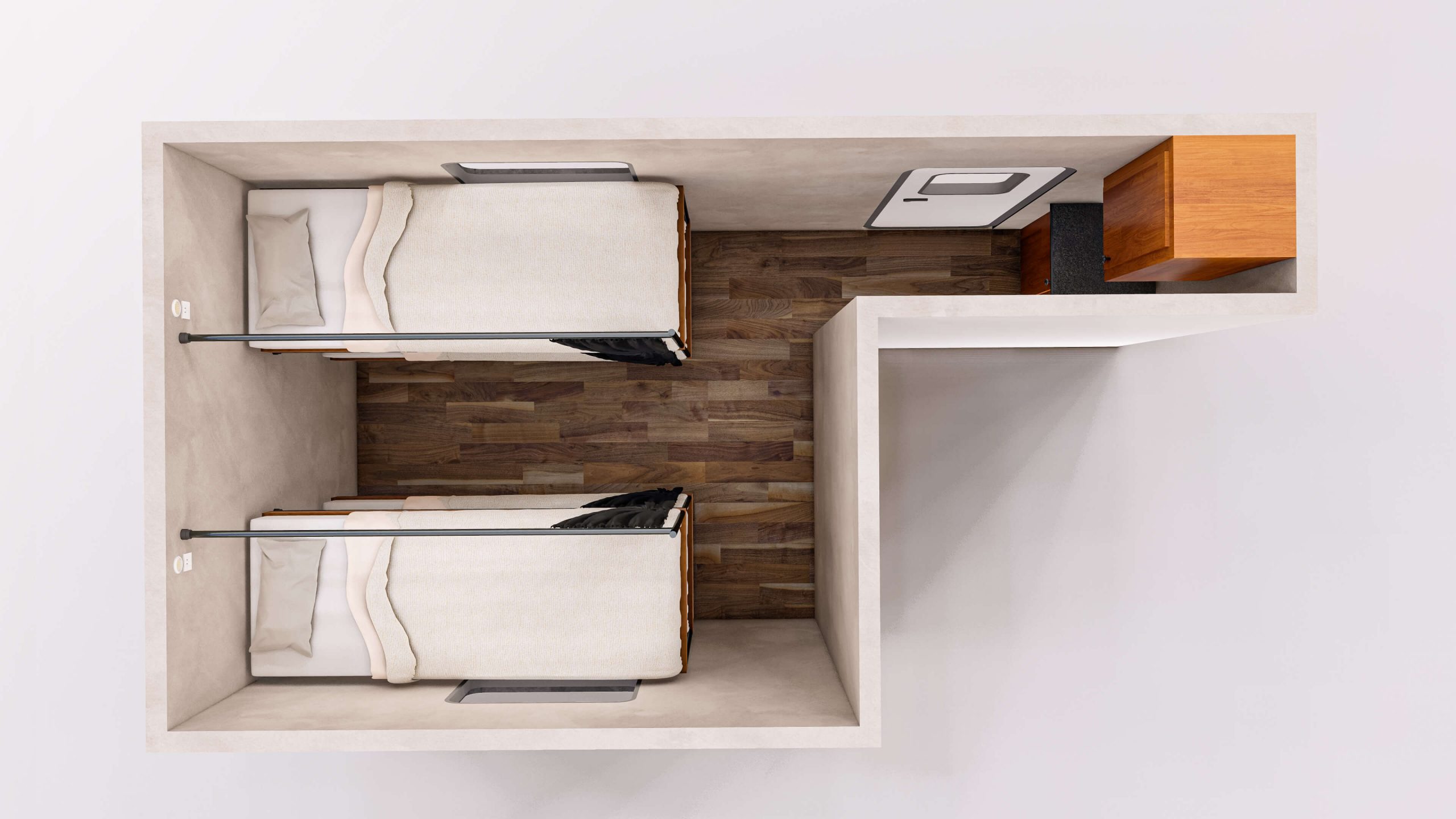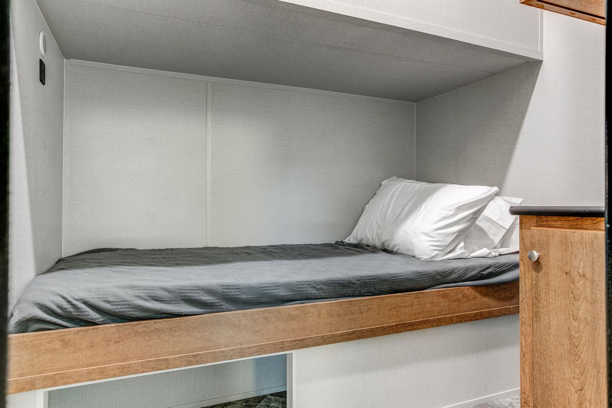 Enterprise Lodging Sleeper Trailers also contain one shared sleeping space with two bunks for a total of 4 beds. This room features a private entrance and storage space for guests.