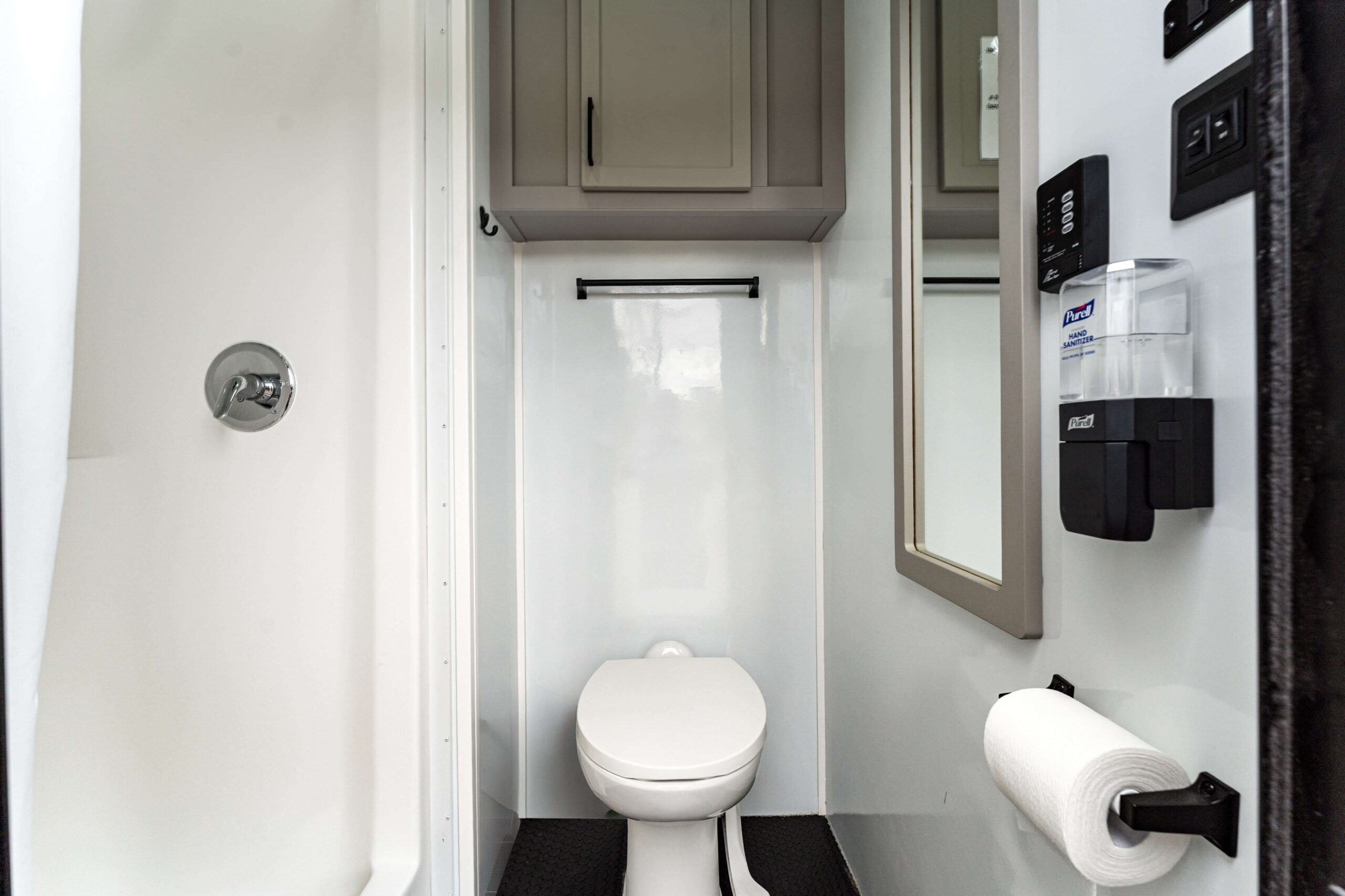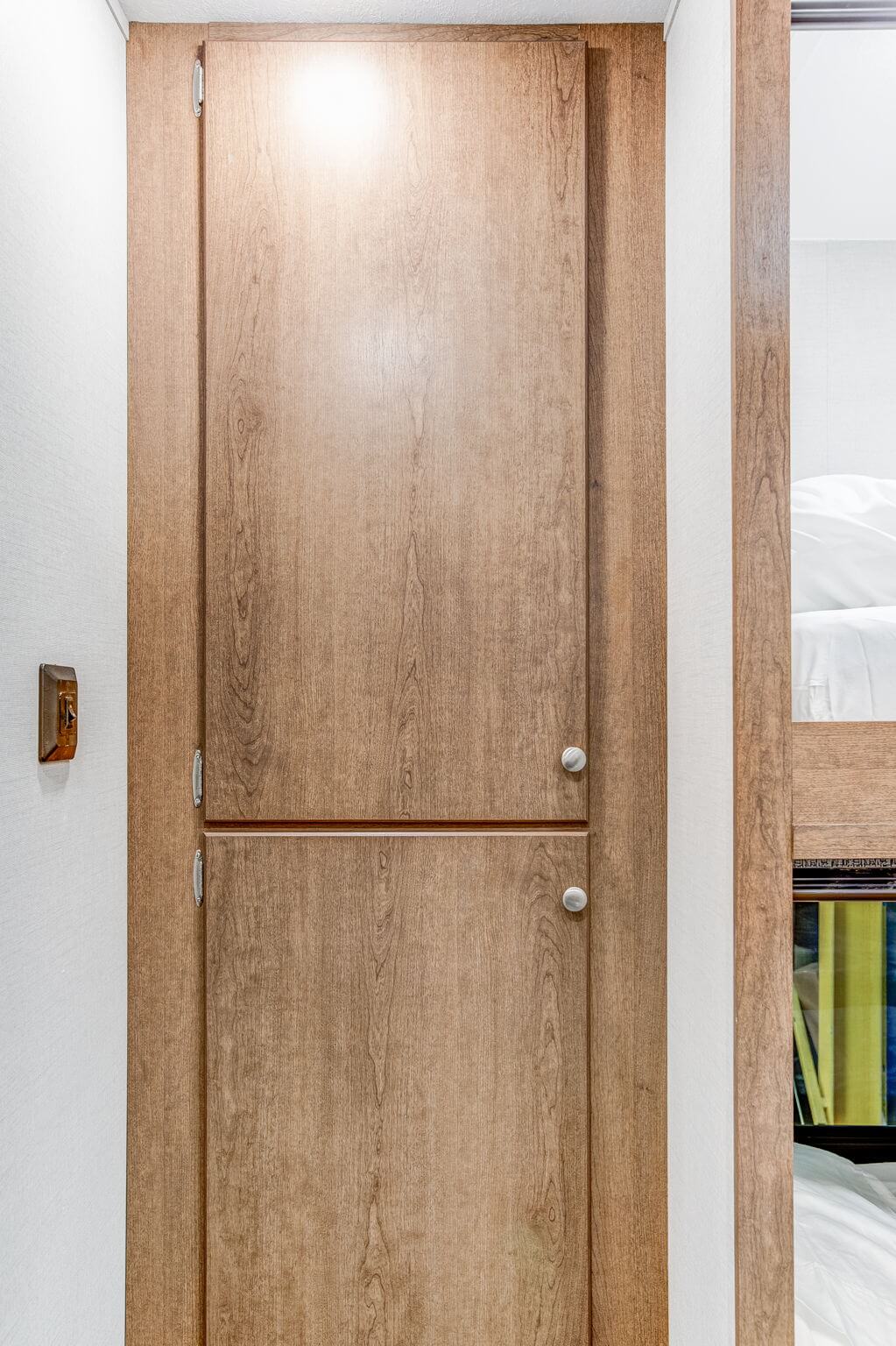 Our sleeper trailers feature 8 private rooms each with their own private door with digital locks. These rooms have either an upper or lower bunk with website usb charge port and a personal stage closet. Each private room also contains storage space under the bed.